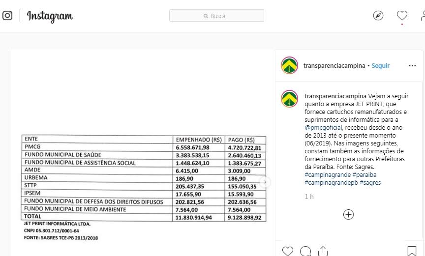 No total, a gestão do prefeito Romero Rodrigues gastou, até então, com recarga de cartuchos e compra de pneus, um total de R$ 18.503.442,68. Veja o post: https://www.instagram.com/p/BzLaoHpnOlw/?igshid=6n6sqzhaw0l9