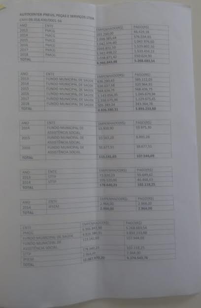Outro dado que chama a atenção é o que se refere aos gastos com compra de pneus. No período de 2013 até 2018, os gastos da Prefeitura de Campina Grande com a compra de pneus alcançaram o valor de R$ 9.374.543,76 com a empresa Auto Center Pneus. O interessante é que a maioria da frota da PMCG é formada por carros locados, cuja responsabilidade pela substituição dos pneus é da locadora, não da administração municipal.