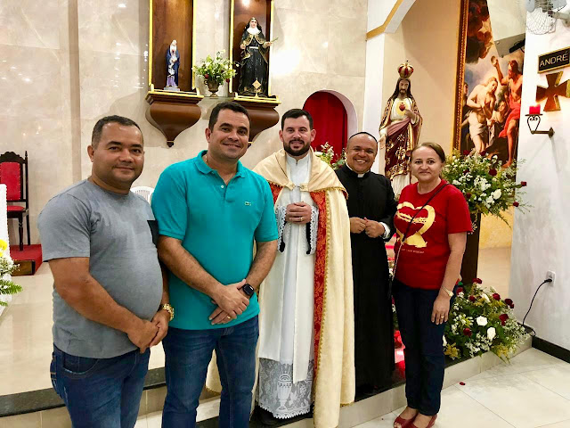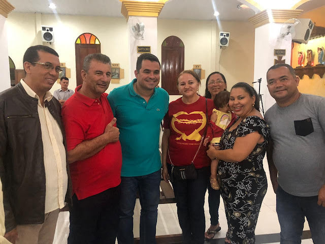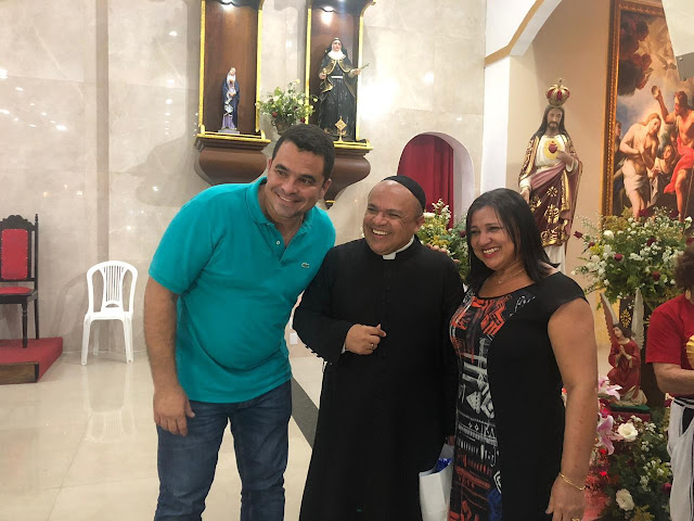 O prefeito da cidade de Cruz do Espírito Santo, Pedrito, participou da missa realizada dentro do novenário da Paróquia Sagrado Coração de Jesus, no Tibiri I, em Santa Rita, nesta quinta-feira (8), celebrada pelo pároco Pe. Cláudio e que contou com a participação do Pe. Cicero Salvador, titular da Paróquia do Divino Espírito Santo, em ‘Cruz’.