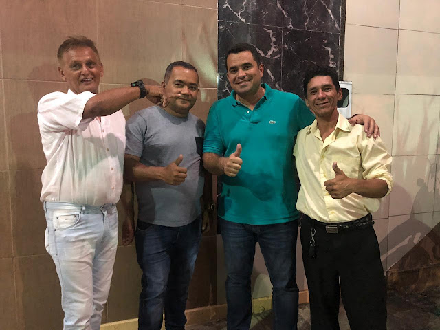 Ao lado do prefeito, estavam os vereadores Vanda Vasconcelos e Gil’s Bar, além dos ex-vereadores Olavo de Baleia e Missinho do Bode.
