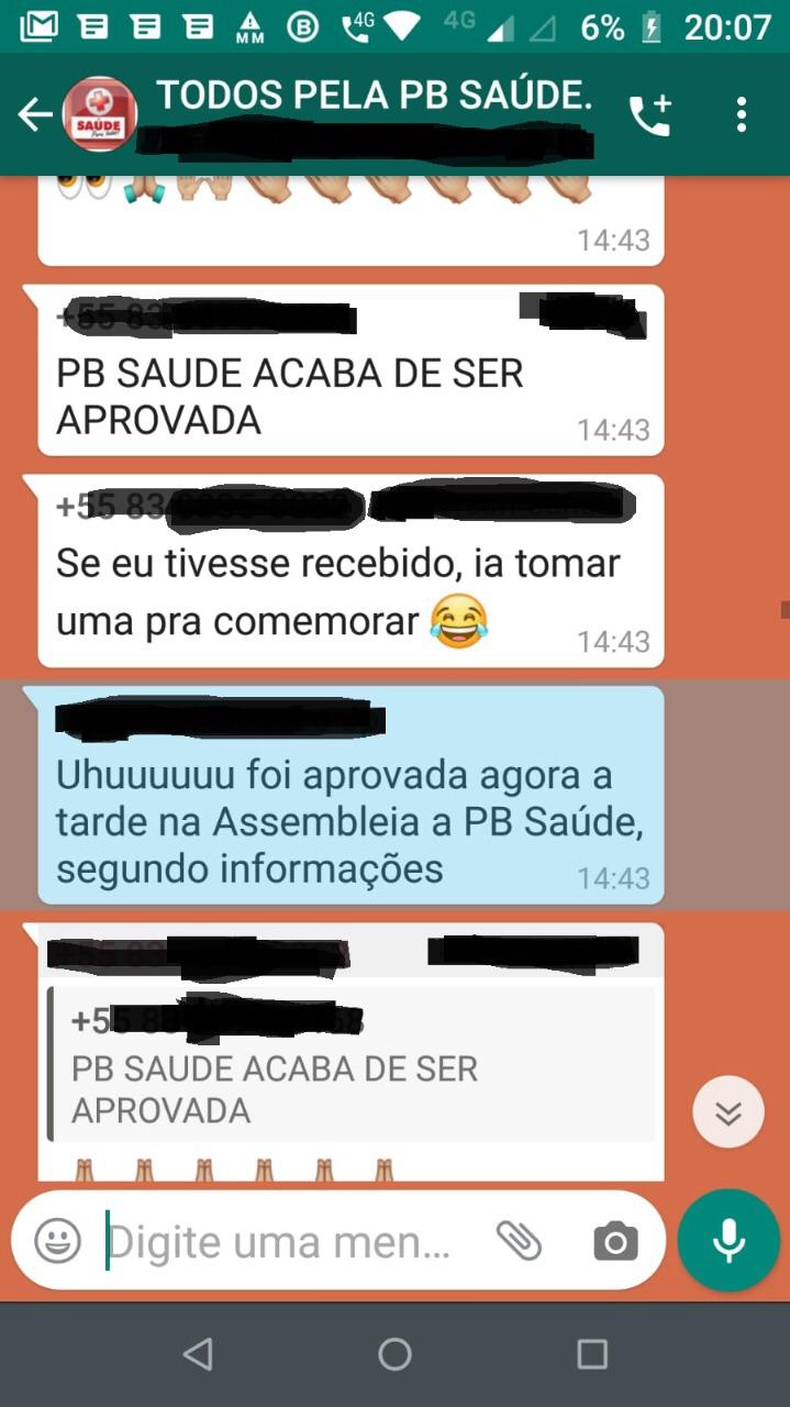 O objetivo é resolver a situação desses trabalhadores. “Tudo está ocorrendo para que a Saúde do Estado não venha à falência. Parabéns aos deputados que votaram favoravelmente para a criação do PB Saúde”, escreveu um servidor em um grupo criado nas redes sociais. “Graças ao empenho e o prestígio do presidente da Assembleia, Adriano Galdino, conseguimos a vitória”, ressaltou outro funcionário público.