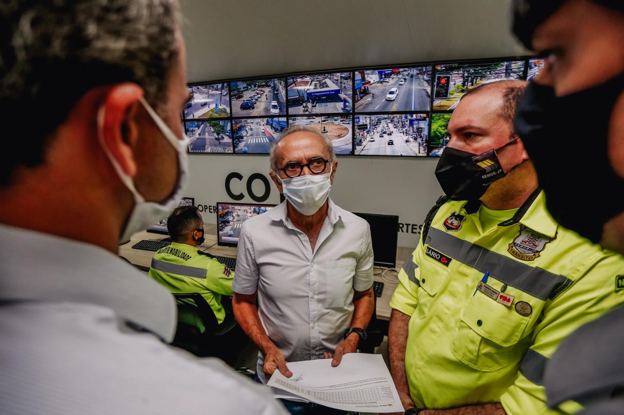 O gestor ainda visitou o Centro Operacional de Trânsito e Transportes (Cott), onde conferiu o monitoramento via câmeras. “Hoje a Semob tem 70 câmeras e disponibiliza essas imagens para outros órgãos, mas pretendemos ampliar o número para 400, em parceria com o Governado do Estado, e que as imagens sejam trabalhadas por todos os órgãos que precisam, envolvendo trânsito, segurança, saúde, além do planejamento das ações viárias”, defendeu.