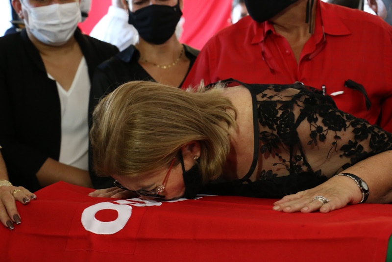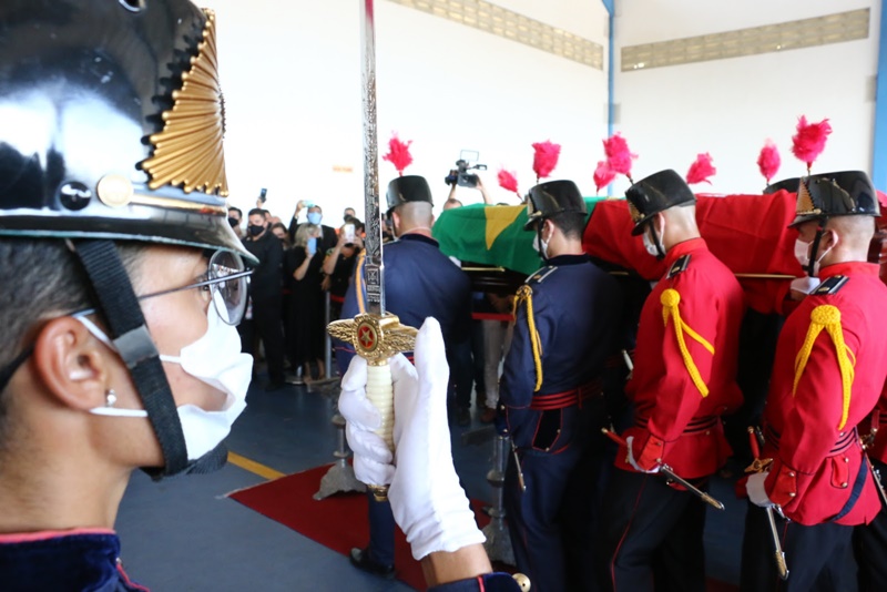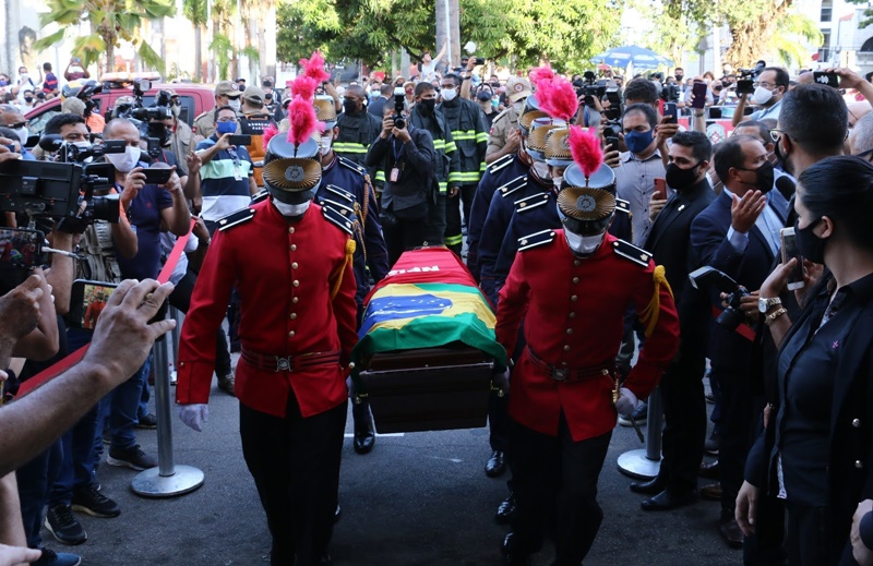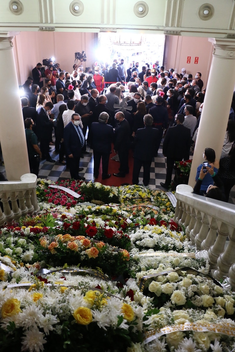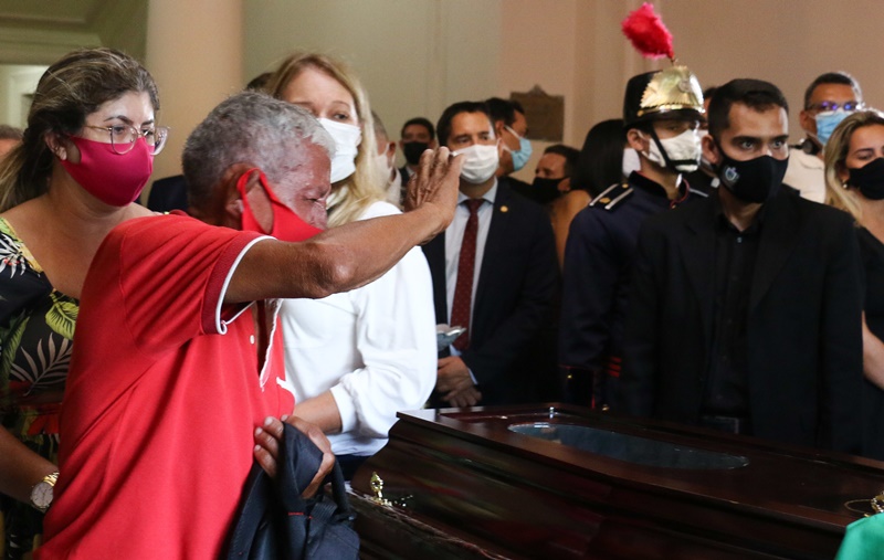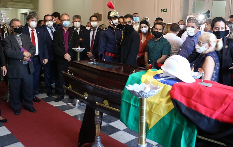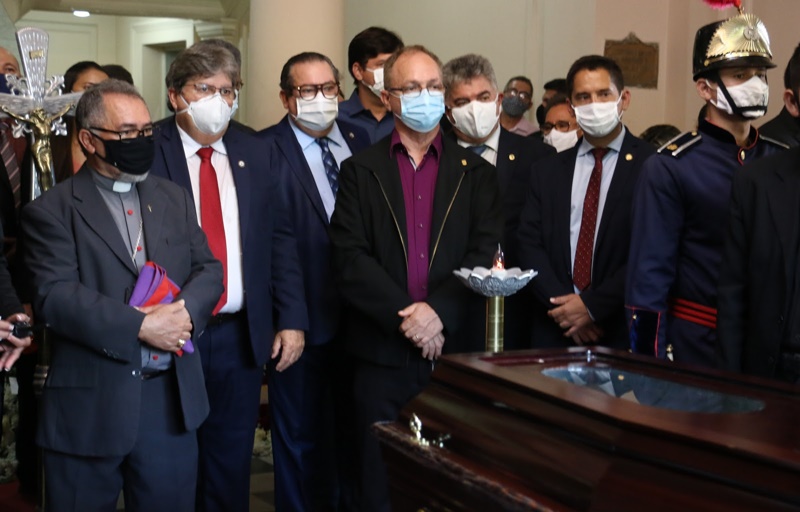 O governador João Azevêdo acompanhou, nesta terça-feira (9), o velório do senador e ex-governador José Maranhão, que faleceu nessa segunda-feira (8), vítima de complicações da Covid-19. O chefe do Executivo estadual decretou luto oficial no estado por três dias e prestou homenagens ao parlamentar paraibano no hangar do Governo do Estado, no Aeroporto Castro Pinto, onde ocorreu uma cerimônia ecumênica, e no Palácio da Redenção, local em que população se despediu do político.