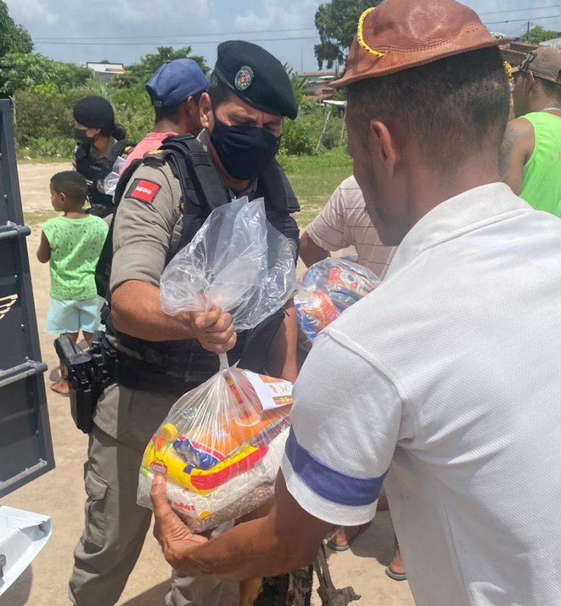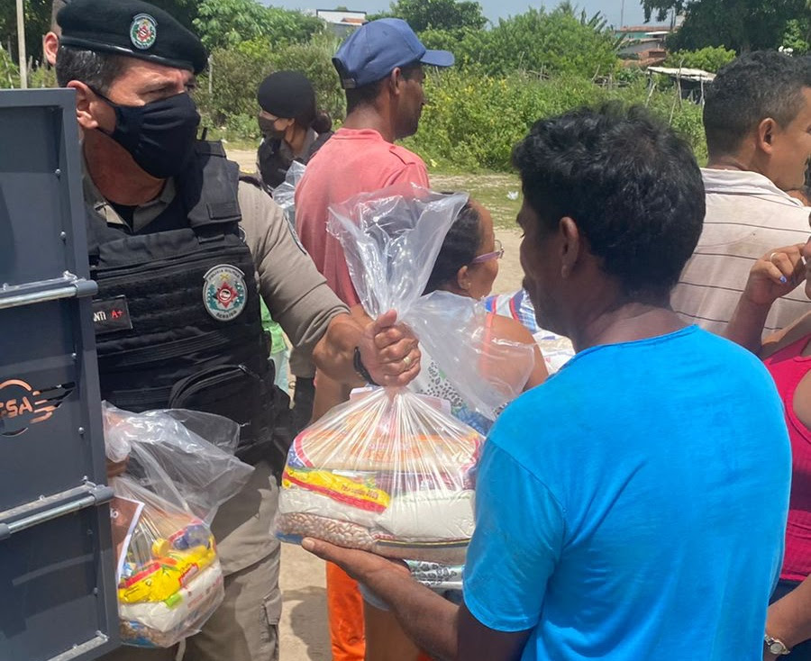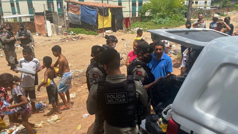 Um dos pontos escolhidos para a distribuição dos donativos, feita por policiais do Regimento de Polícia Montada (RPMont) e da Academia de Polícia Militar do Cabo Branco, foi a rua onde criminosos ligados ao tráfico teriam gravado vídeos exibindo armas para assustar os moradores. O local foi ocupado pela PM nos últimos dias.