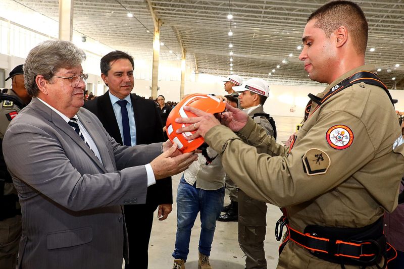 O governador João Azevêdo participou, nesta segunda-feira (16), no Centro de Convenções de João Pessoa, da solenidade de conclusão do curso de formação de 181 soldados da Polícia Militar (PMPB) e de oito bombeiros militares. No total, foram formados 58 soldados em João Pessoa; 15 em Guarabira; 34 em Campina Grande; 19 em Sumé; 16 em Patos; 20 em Cajazeiras; e 19 em Sousa.