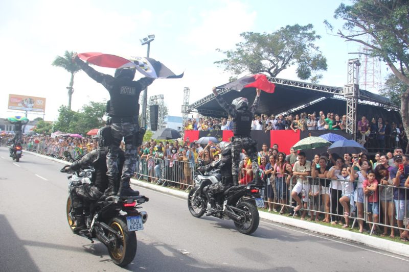 O comandante-geral da Polícia Militar, coronel Sérgio Fonseca, comentou que um esquema foi montado para garantir que o desfile e o feriado de 7 de Setembro fossem de tranquilidade. “Cerca de 200 policiais militares a pé e motorizados, atuam no entorno e percurso do desfile cívico-militar para garantir a tranquilidade do evento. São 200 anos da Independência, 100 anos do Hino Nacional e 190 anos da Polícia Militar, completados este ano. Então, são três datas marcantes e tenho certeza que o desfile de hoje tem uma simbologia especial, porque é a retomada deste evento, após dois anos”, falou.