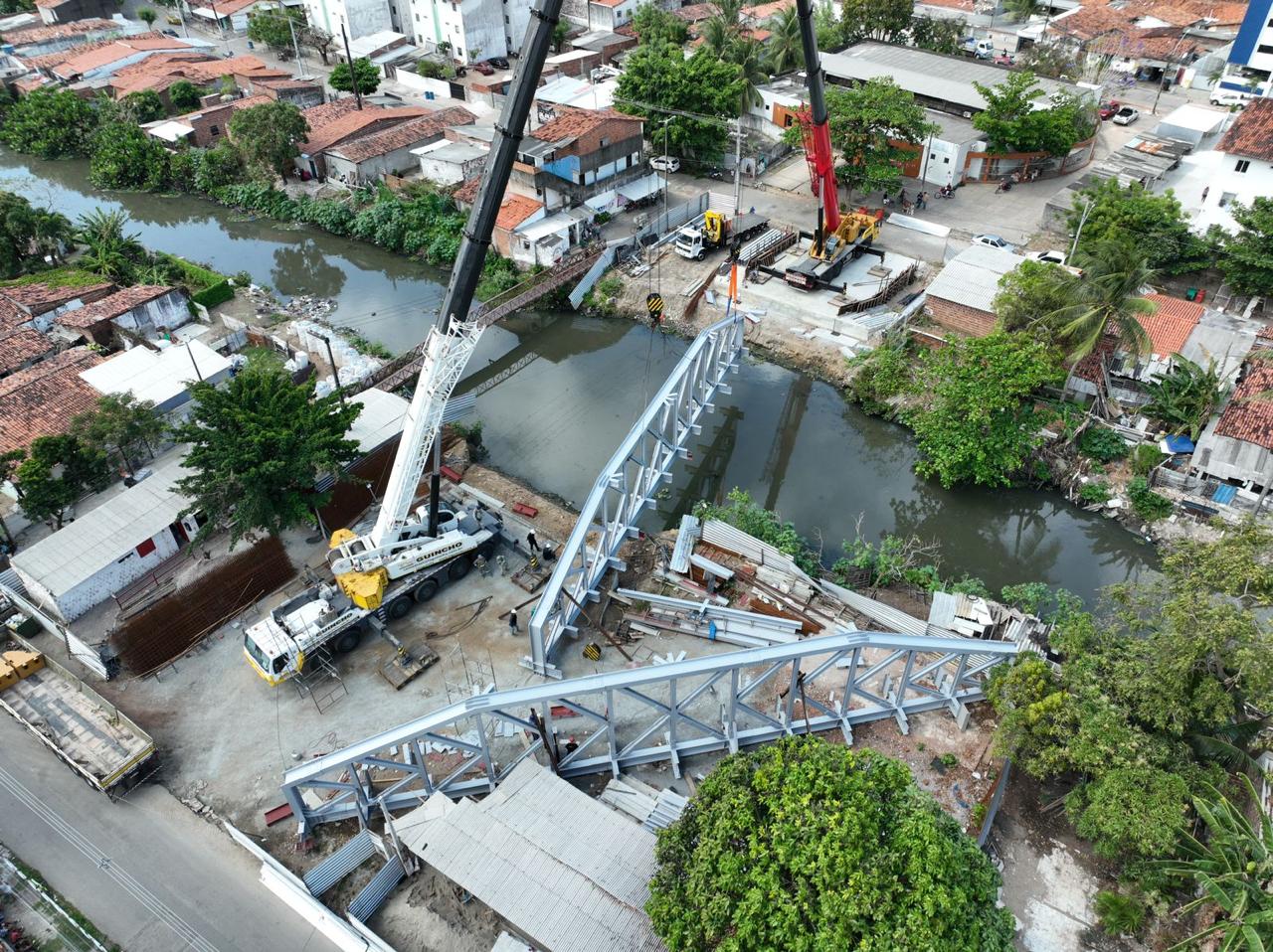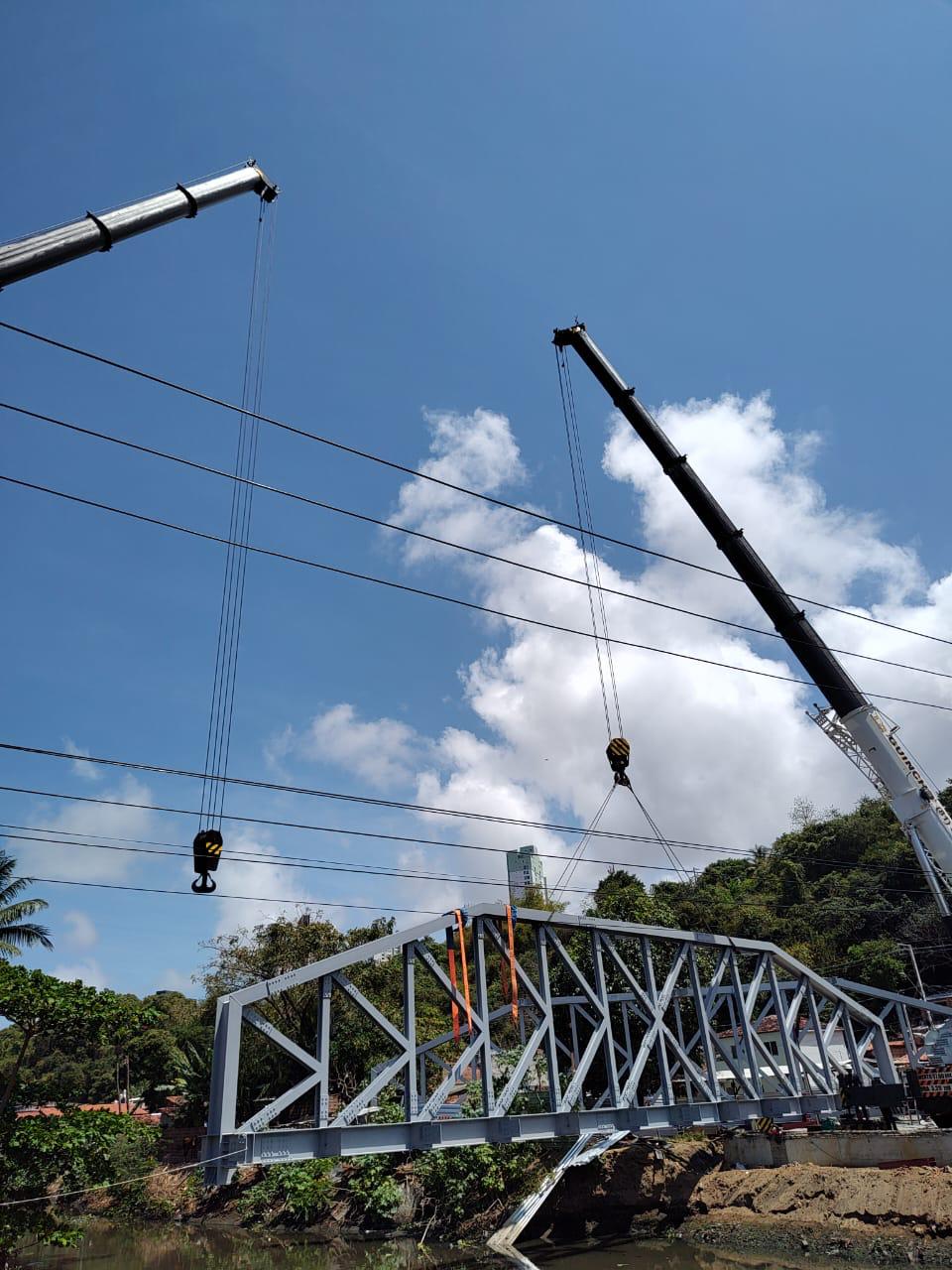 “Essa ponte é completa, com duas faixas para veículos, ciclovia e ciclofaixa. A operação desta quinta-feira consiste em elevar duas treliças grandes em aço até a base de concreto que já está pronta. A nossa expectativa é que o serviço dure dois dias e, já a partir da próxima semana, esperamos iniciar a concretagem da laje para, nos próximos 40 dias, entregar a ponte à população”, explicou Luciano.