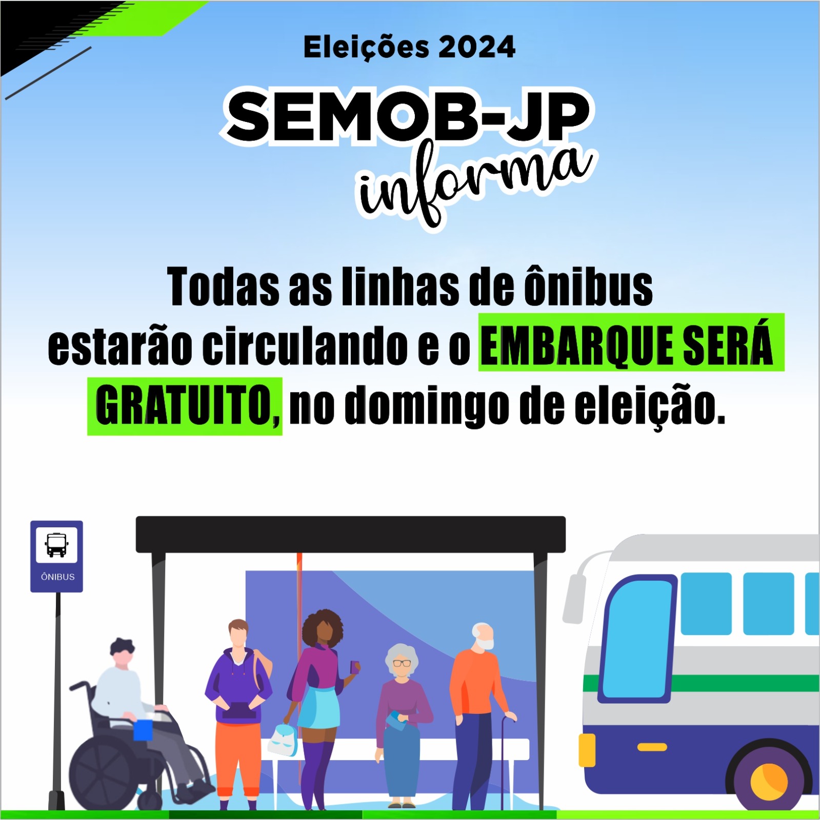 Transporte público – Nesta semana, a Semob-JP já havia divulgado a operação do transporte público na Capital para o dia do pleito, que contará com todas as linhas de ônibus em circulação e gratuidade da tarifa para passageiros, entre 6h e 20h, portando Passe Legal e Título de Eleitor, seguindo decreto de nº 10.772, publicado no Diário Oficial no último dia 1º de outubro, que teve como base recomendação do Tribunal Superior Eleitoral (TSE).