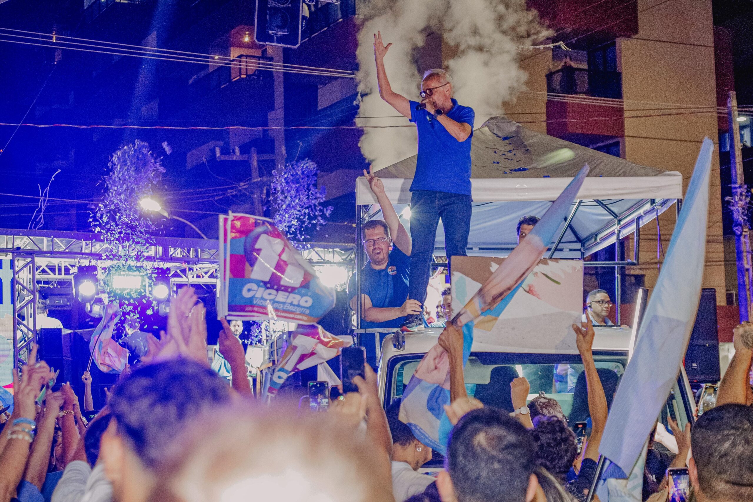 Depois de discursar para apoiadores no Comitê Central, a comitiva desceu a Avenida Epitácio Pessoa, em grande mobilização até o Busto de Tamandaré. No local, houve grande concentração e mais apoio à dobradinha de Cícero Lucena e Leo Bezerra.