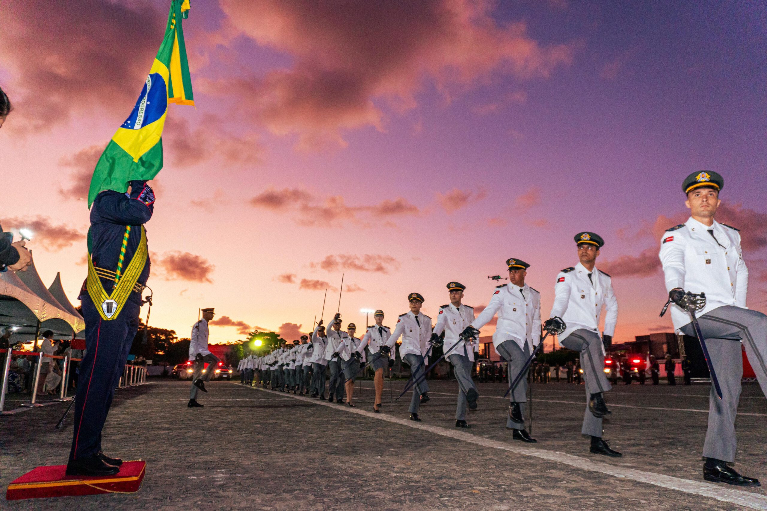 “É uma imensa satisfação estar aqui nessa solenidade, onde aspirantes concluem um curso e iniciam uma jornada de honra e de dever. Vocês fizeram um juramento para proteger e servir à sociedade. Cada decisão que tomarem moldará o futuro da nossa instituição, por isso é preciso que sejam exemplos e guardiões da esperança, honrando o sacrifício dos que vieram antes na corporação. Parabéns a todos e que Deus ilumine o caminho de vocês”, frisou o comandante-geral da Polícia Militar, coronel Sérgio Fonseca.