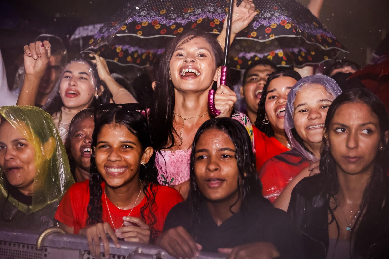 A primeira noite da Festa das Neves 2025 foi de muita chuva, mas o público não se intimidou e, com capas e sombrinhas, foi prestigiar a abertura do evento no Parque Solon de Lucena. Realizada pela Prefeitura de João Pessoa, por meio da sua Fundação Cultural (Funjope), a festa em comemoração ao aniversário de 440 anos da cidade foi aberta com uma missa campal celebrada pelo arcebispo da Paraíba, Dom Manoel Delson, seguida de show da banda Colo de Deus. Nesta segunda-feira (28), tem shows do Padre Márcio, cantor Elson Júnior e Padre Puan, a partir das 19h.