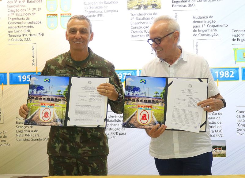 “Este é um projeto que visa otimizar o potencial musical do Exército Brasileiro, especialmente por meio de suas bandas marciais. O objetivo é utilizar a música como ferramenta para descobrir e desenvolver talentos, promovendo a profissionalização e o interesse musical desde os primeiros anos. Trata-se de investir no desenvolvimento integral do cidadão, começando na infância”, destacou o prefeito Cícero Lucena, durante a assinatura do termo no 1º Grupamento de Engenharia.