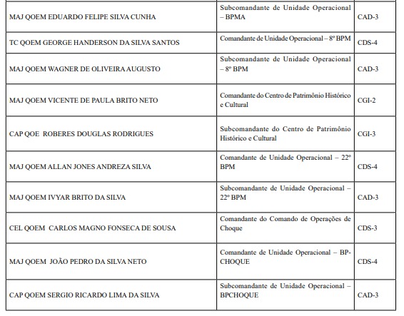 Entre as unidades da PM que terão novos comandos estão Rotam, BBTran e Choque.