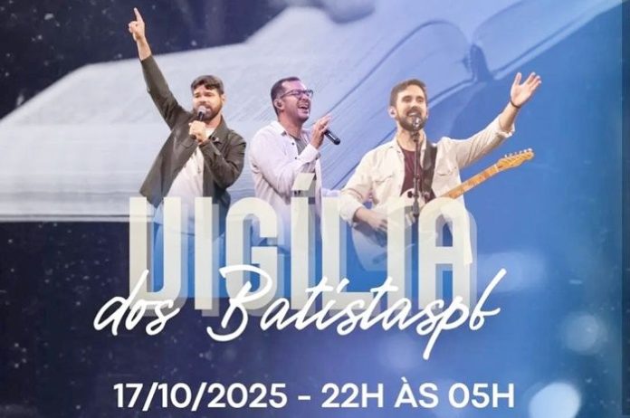 As igrejas da Convenção Batista Paraibana vão se reunir por sete horas ininterruptas para orar, louvar e ministrar a Palavra de Deus. É a “Vigília dos Batistas”, que acontece nesta sexta-feira (17), a partir das 22h, e se estende até as 5h da manhã do sábado, na Arena Cidade Viva, instalada no Campus Metropolitano (BR 101, logo na saída de João Pessoa sentido Recife).