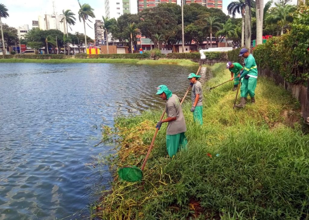 As equipes da Autarquia Especial Municipal de Limpeza Urbana (Emlur) começaram, nesta segunda-feira (27), ações de conservação em diversos pontos de João Pessoa. Entre as frentes de trabalho, destaque para o Parque Solon de Lucena (Lagoa), onde os agentes realizaram limpeza aquática, com remoção de vegetação e resíduos descartados irregularmente pela população. O serviço incluiu também a roçagem e manutenção da área verde no entorno do Parque, garantindo um espaço mais limpo e agradável para quem circula pelo local.