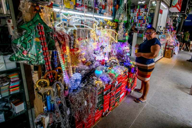 Bethânia Moreira, que comercializa no Shopping Terceirão há 18 anos, disse que quando chega nesta época próxima do Natal, os produtos que mais vendem são as luzes decorativas e pisca-pisca. “A gente dá desconto, faz promoção e ajeita o preço. O cliente só não deixa de levar. Descontos de 5% a 10% para pagamento no cartão, Pix e dinheiro”, afirmou.
