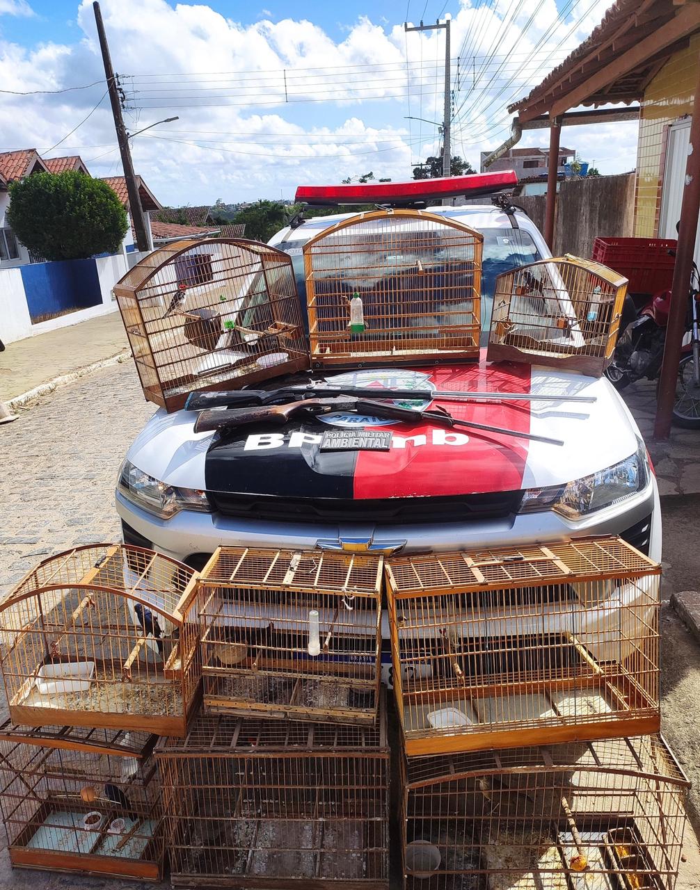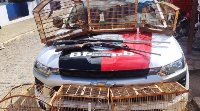 Nove aves silvestres que estavam sendo mantidas em cativeiro foram resgatadas, nessa segunda-feira (3), em uma operação do Batalhão Especializado em Policiamento do Meio Ambiente, na cidade de Bananeiras. Duas armas foram apreendidas e duas pessoas foram autuadas.