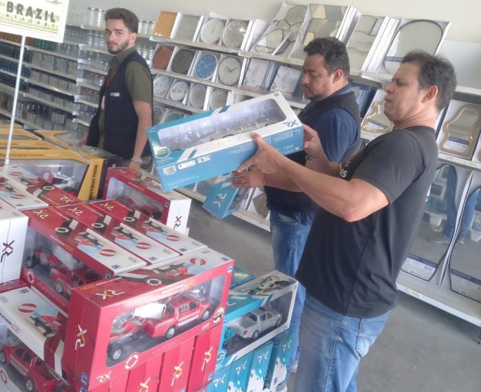 Sem selo de qualidade – Já a maior parte dos artigos de lazer infantil apreendidos registrava irregularidades como falta do selo de qualidade do Inmetro, a falta da data de validade e de fabricação nas embalagens, bem como as informações obrigatórias não estarem em língua portuguesa, além da falta de indicação dos preços nos produtos.