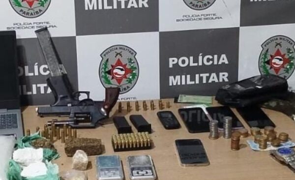 Parte do material ilícito foi abandonado pelos suspeitos na região de Jacumã. No local foi apreendido uma pistola, um revólver, munições de diversos calibres, drogas e equipamentos utilizados para o comércio ilegal.