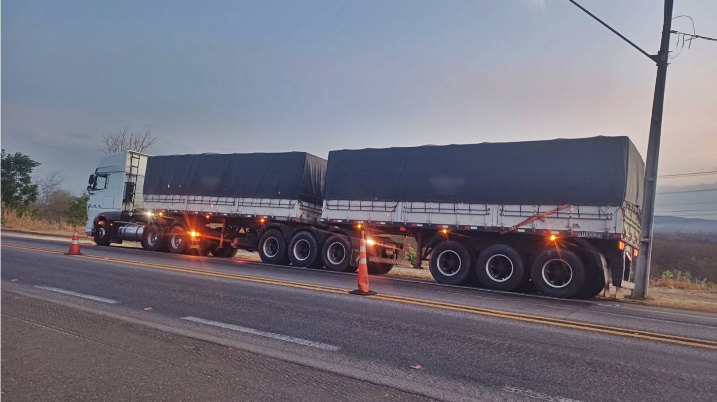 Já no município de Cajazeiras, sertão paraibano, no km 511 da BR-230, 45 minutos após a ocorrência anterior, equipe da PRF abordou uma Combinação de Veículos de Carga (CVC) composta por um caminhão trator DAF/XF e dois semirreboques para fiscalização. Durante a conferência da documentação, o condutor, um homem de 35 anos, apresentou a Autorização Especial de Trânsito (AET) de porte obrigatório, necessária para veículos com dimensões excedentes. Contudo, ao realizar a medição no local, a equipe constatou que o comprimento total do conjunto era de 20,30 metros, superior aos 19,80 metros declarados na AET. Essa informação falsa (19,80m) foi crucial para que o transportador obtivesse a autorização para trânsito diurno e noturno. Diante da comprovação de que o documento foi obtido mediante inserção de dados inverídicos no sistema autodeclaratório, configurando, em tese, falsidade ideológica (Art. 299 do Código Penal), o engenheiro e a empresa responsável pela inserção da informação poderão responder criminalmente pelo fato. O condutor foi encaminhado na condição de testemunha à Delegacia de Polícia Judiciária para os procedimentos cabíveis. Além disso, o veículo foi autuado por transitar com dimensões superiores aos limites legais e recolhido ao pátio conveniado para regularização.