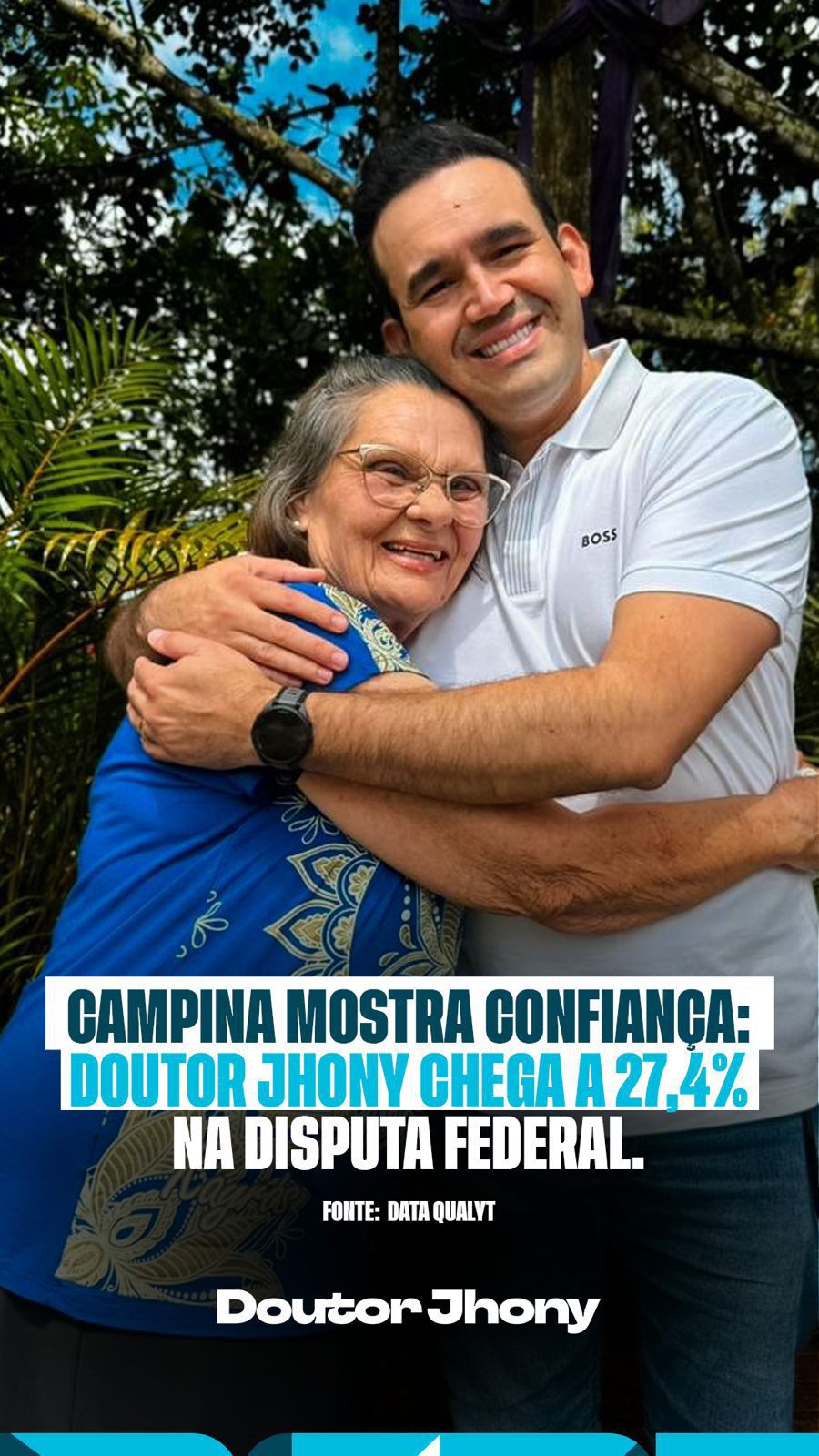 Ao comentar o resultado, Doutor Jhony destacou que os números refletem um trabalho construído com diálogo e compromisso com a população. “Recebo esse resultado com muita responsabilidade. Ele mostra que Campina Grande está atenta a propostas, a trabalho sério e a projetos que olhem para as pessoas. Seguiremos caminhando com humildade, ouvindo a população e apresentando ideias para contribuir com o desenvolvimento da cidade e da Paraíba no Congresso Nacional”, afirmou.