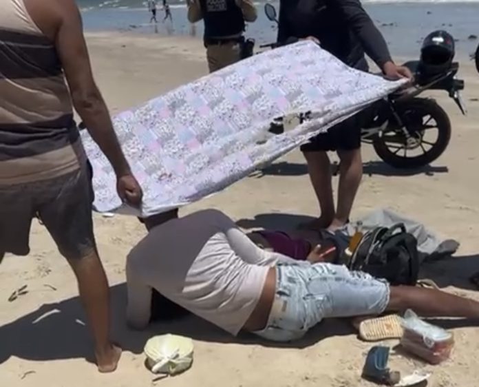 Uma mulher foi atropelada por um carro enquanto estava deitada na faixa de areia da praia de Pitimbu, no Litoral Sul da Paraíba, nesta quinta-feira (24).