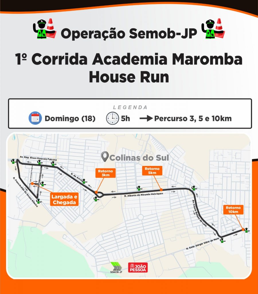 A Superintendência Executiva de Mobilidade Urbana de João Pessoa (Semob-JP) definiu as operações de trânsito para o Circuito de Corridas Zona Sul e a 1ª Corrida Academia Maromba House Run, que serão realizadas, neste domingo (18).