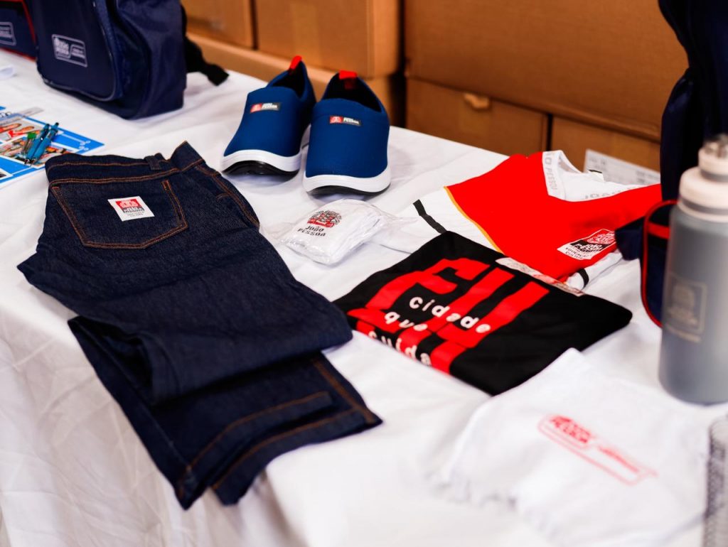 Já o fardamento inclui duas camisas, tênis, dois pares de meias e duas bermudas (para os meninos) e dois shorts saias (para as meninas). No caso do aluno juvenil e adulto, serão duas bermudas ou uma calça jeans e duas camisas. O kit ainda inclui mochila, nécessaire, uma garrafa e uma toalha de mão.