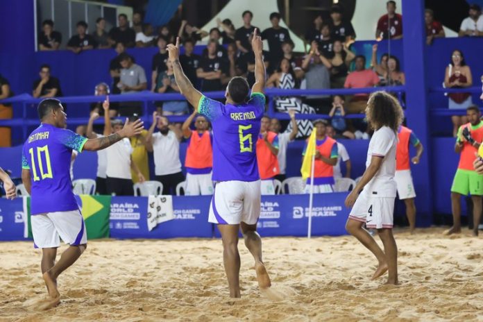 O Brasil está classificado para a final da Copa das Nações de Beach Soccer. Na noite dessa quinta-feira (19), o time verde e amarelo venceu os Estados Unidos por 8 a 6 e garantiu vaga na decisão, que ocorre neste sábado (21), às 14h. O evento, realizado na arena montada no Busto de Tamandaré, entre as praias de Tambaú e Cabo Branco, em João Pessoa, faz parte da programação do Paraíba World Beach Games.