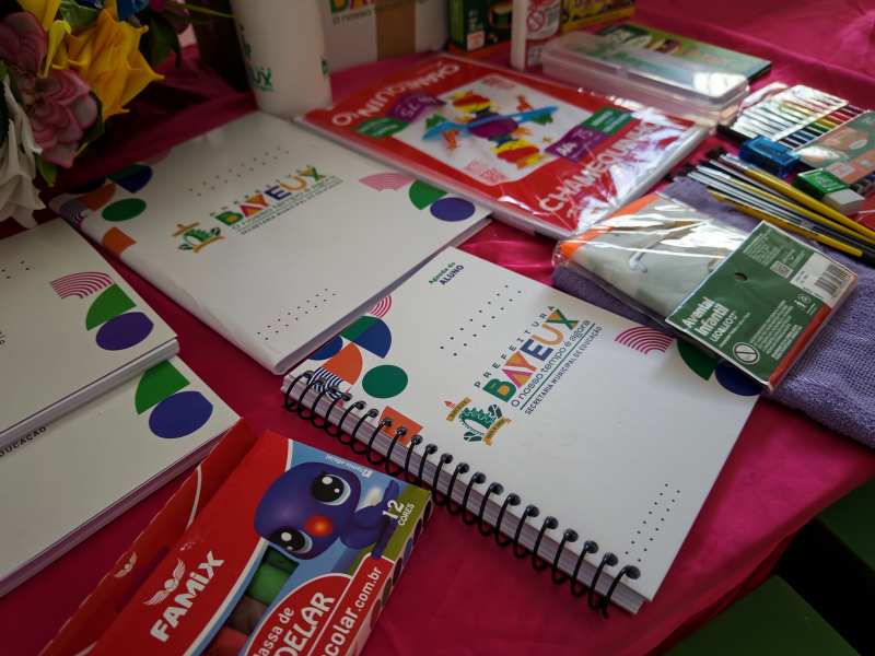 Os kits são montados de acordo com cada etapa de ensino e incluem itens essenciais para o dia a dia escolar, como cadernos, lápis, lápis de cor, tintas e estojos, garantindo melhores condições de aprendizagem dentro da sala de aula.