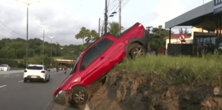 Inusitado: carro cai de barranco após motorista se perder em João...