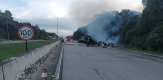 Caminhões pegam fogo após grave acidente na BR 101, na Paraíba;...