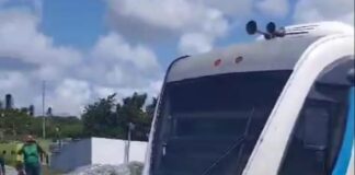 Carro é arrastado por quase 20 metros por trem e mulher...