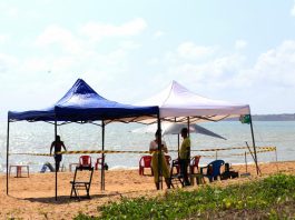 Famílias realizam a montagem de tendas para a festa de Réveillon nesta quarta-feira