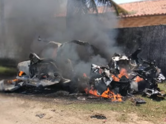 Carro fica destruído após explosão de cilindro de gás natural no Litoral Sul do Estado