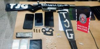 PM apreende rifle, drogas e armas brancas na sede de torcida...