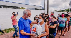 Cícero Lucena entrega kits alimentares a alunos de canoagem do projeto...