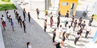 Alunos e coreógrafos das bandas marciais da rede municipal de ensino...