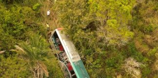 Ônibus cai no despenhadeiro na Serra da Jurema, em Guarabira