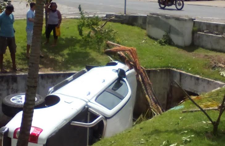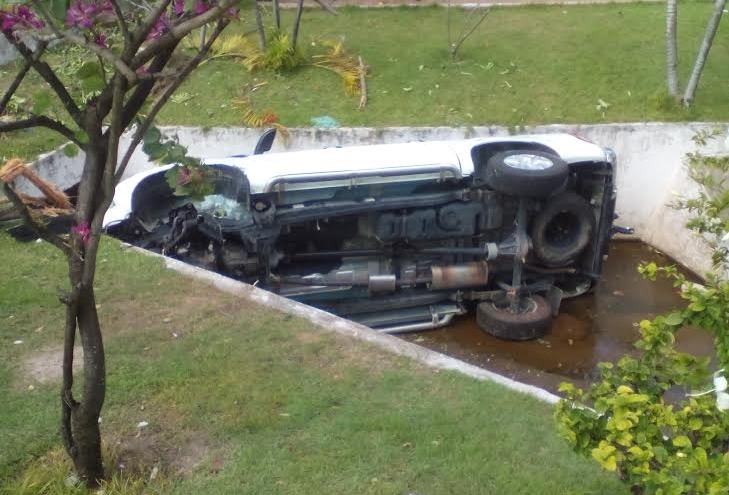 Na manhã deste domingo (31), uma picape Ford Ranger, de cor branca e placas QFH-1149, sobrou na curva que dá acesso ao Retão de ManaÃra, destruiu parte do muro de um condomÃnio e caiu dentro do canal do Bessa que passa ao lado da UPA Oceania.